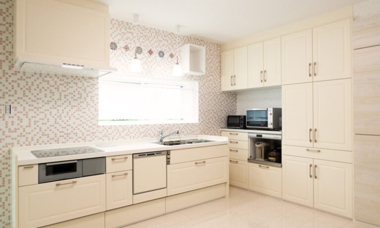 北欧スタイルのタイルで可愛いいダイニングキッチン